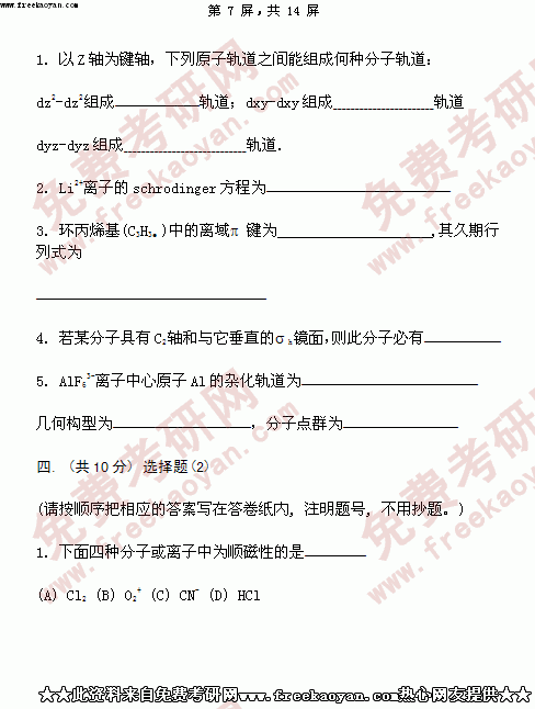 相关话题/物理化学 考研真题 结构 中山大学 化学