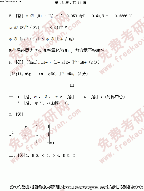 专业课考研经验 本站小编 FreeKaoyan 2018-01-22中山大学2001年考研真题-物理化学(含结构化学)有答案