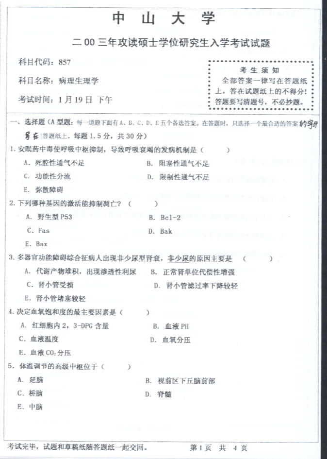 专业课考研经验 本站小编 FreeKaoyan 2018-01-22中山大学2005年考研真题-病理生理学