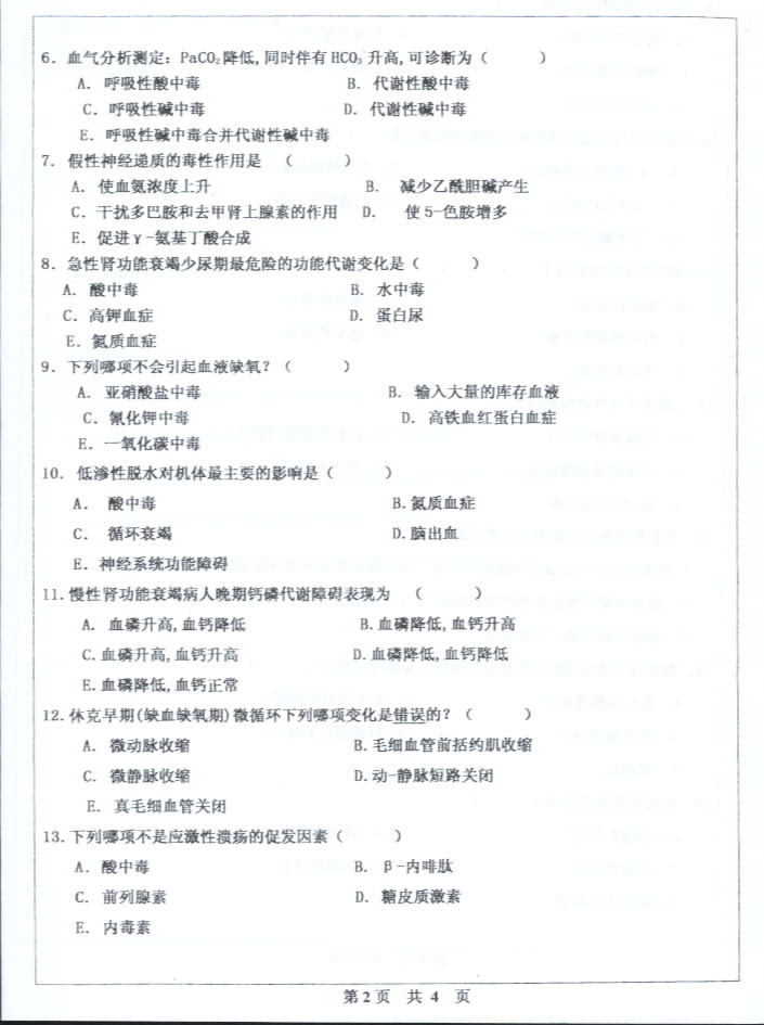相关话题/中山大学 考研真题 病理生理学