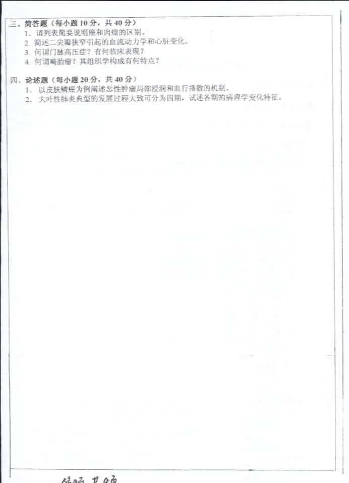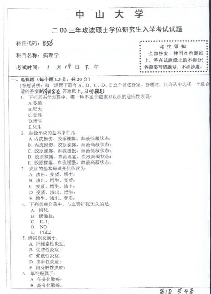 中山大学2003年考研真题-病理学