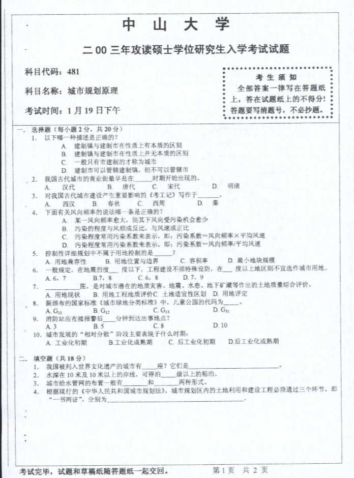 专业课考研经验 本站小编 FreeKaoyan 2018-01-22中山大学2005年考研真题-城市地理与规划原理