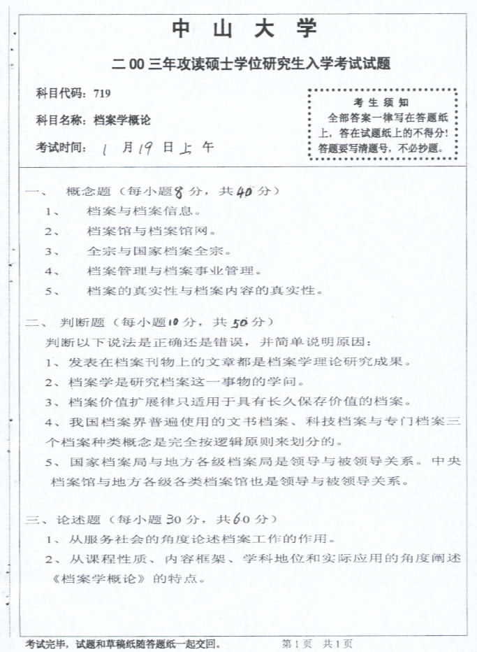 专业课考研经验 本站小编 FreeKaoyan 2018-01-22中山大学2003年考研真题-档案管理学