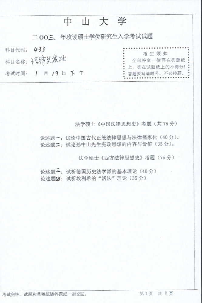 专业课考研经验 本站小编 FreeKaoyan 2018-01-22中山大学2003年考研真题-法理学