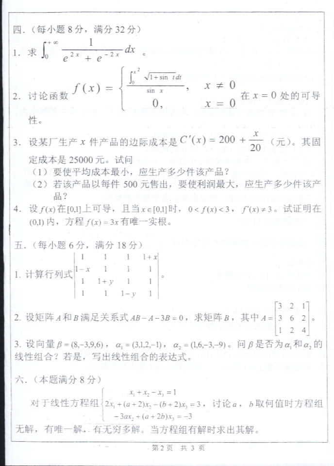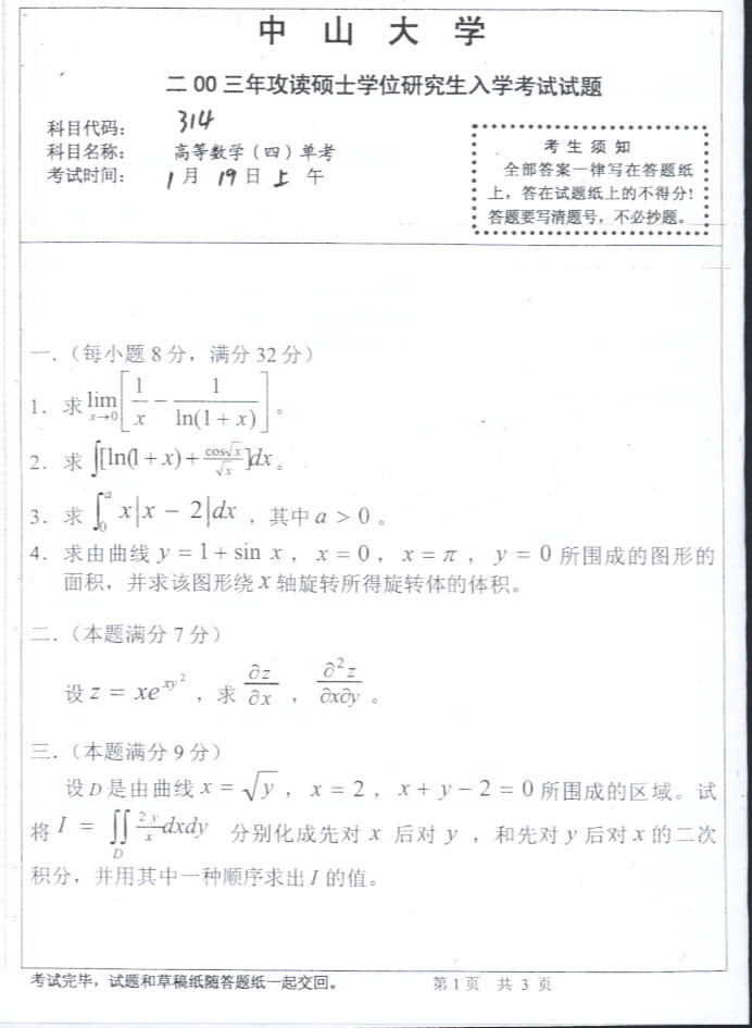 专业课考研经验 本站小编 FreeKaoyan 2018-01-22中山大学2003年考研真题-高等数学A