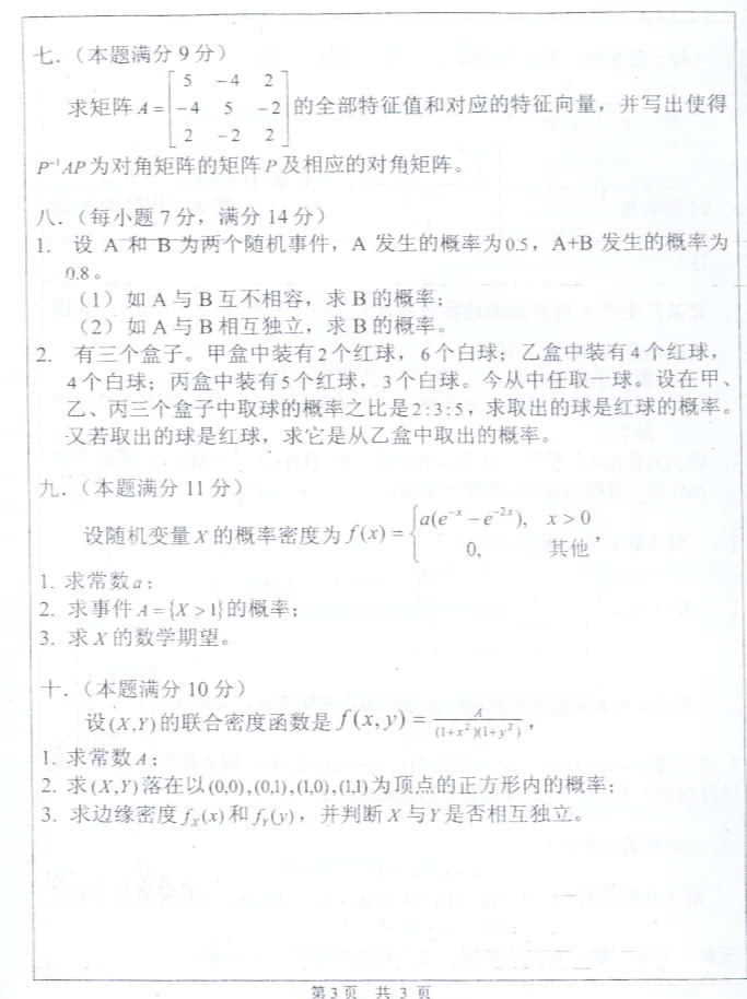 专业课考研经验 本站小编 FreeKaoyan 2018-01-22中山大学2003年考研真题-概率论与常微分方程