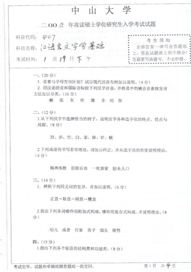 相关话题/考研真题 中山大学 基础 汉语言文字学