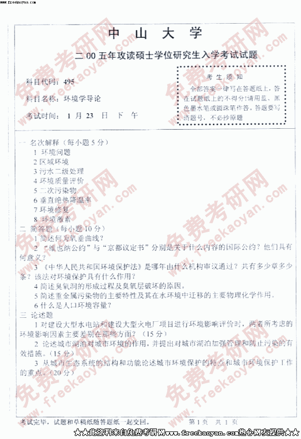 专业课考研经验 本站小编 FreeKaoyan 2018-01-22中山大学2003年考研真题-河口动力学