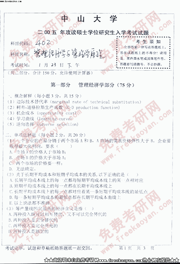 中山大学2005年考研真题-会计学(含基础会计与中级财务会计)