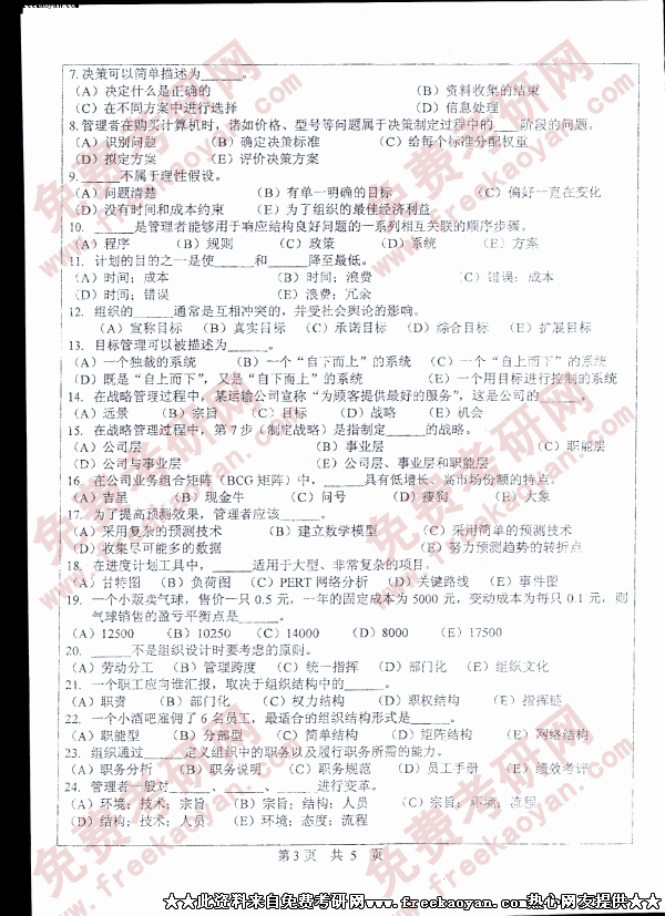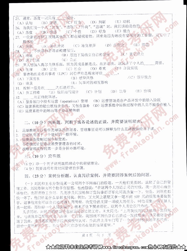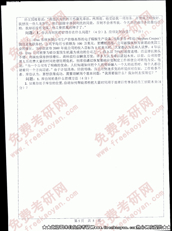 中山大学2005年考研真题-管理学统考