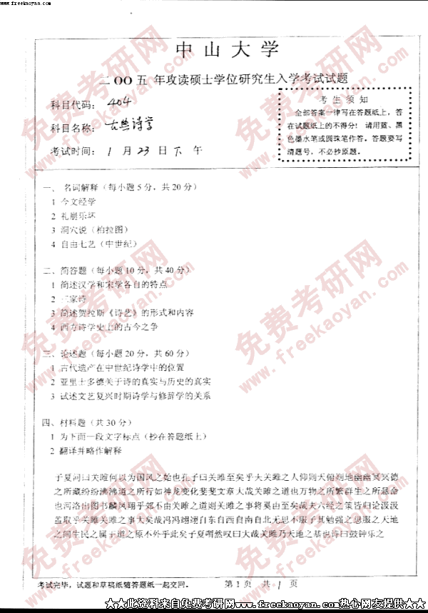 专业课考研经验 本站小编 FreeKaoyan 2018-01-22中山大学2005年考研真题-汉语言文字学基础