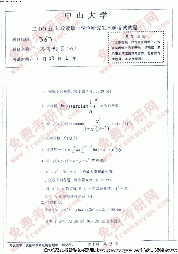 中山大学2005年考研真题-高分子化学(含高分子物理)