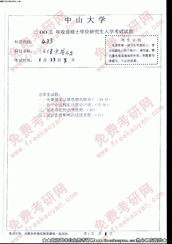 专业课考研经验 本站小编 FreeKaoyan 2018-01-22中山大学2005年考研真题-法学理论基础