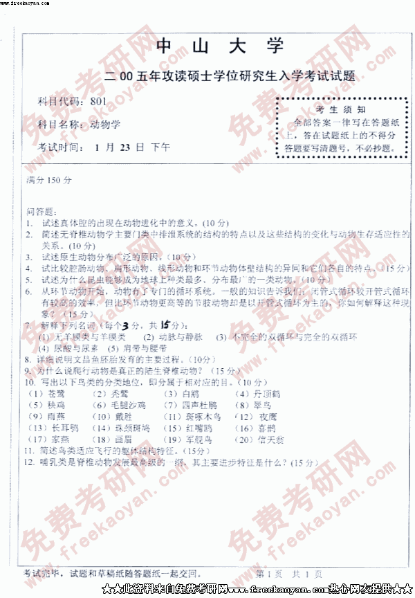 专业课考研经验 本站小编 FreeKaoyan 2018-01-22中山大学2005年考研真题-高等数学A