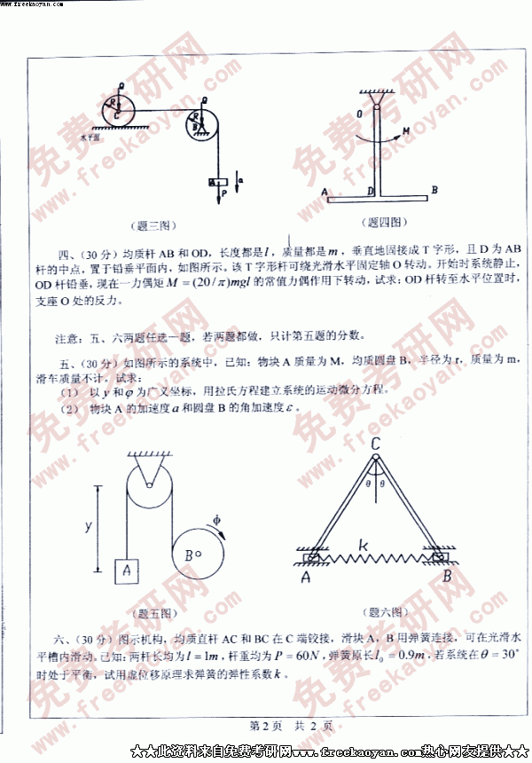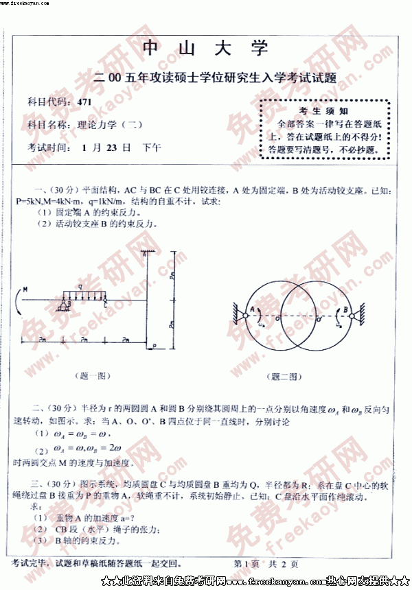 中山大学2005年考研真题-理论力学二