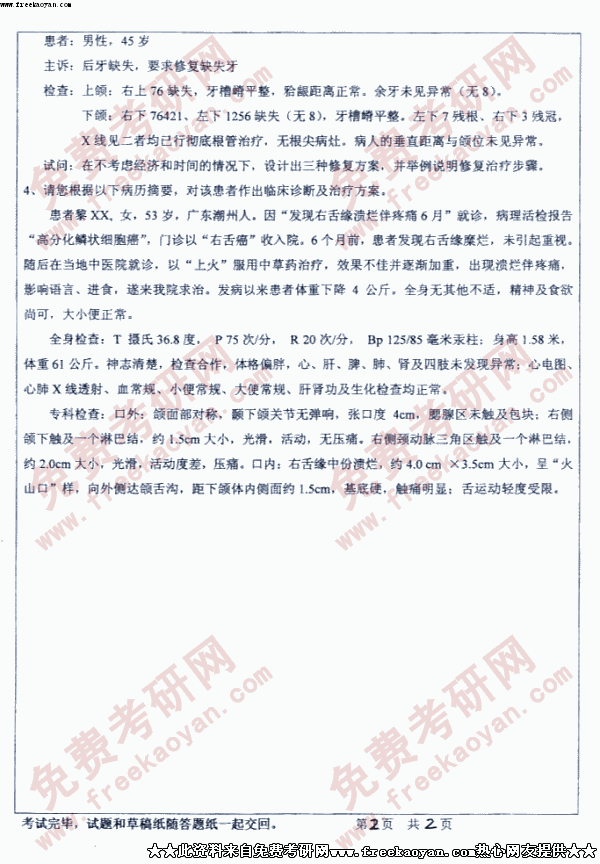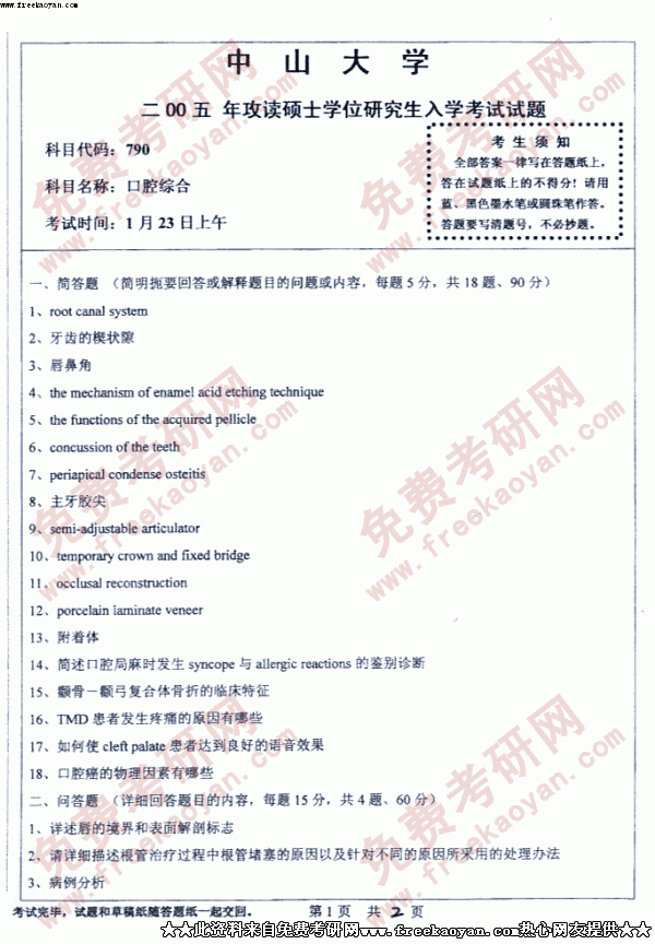 中山大学2005年考研真题-口腔综合