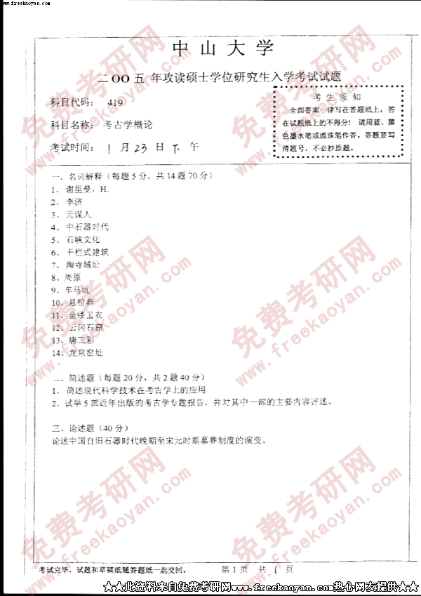 专业课考研经验 本站小编 FreeKaoyan 2018-01-22中山大学2005年考研真题-民俗学概论