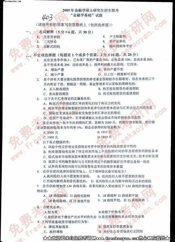 中山大学2005年考研真题-经济学基础(含西方经济学和政治经济学)
