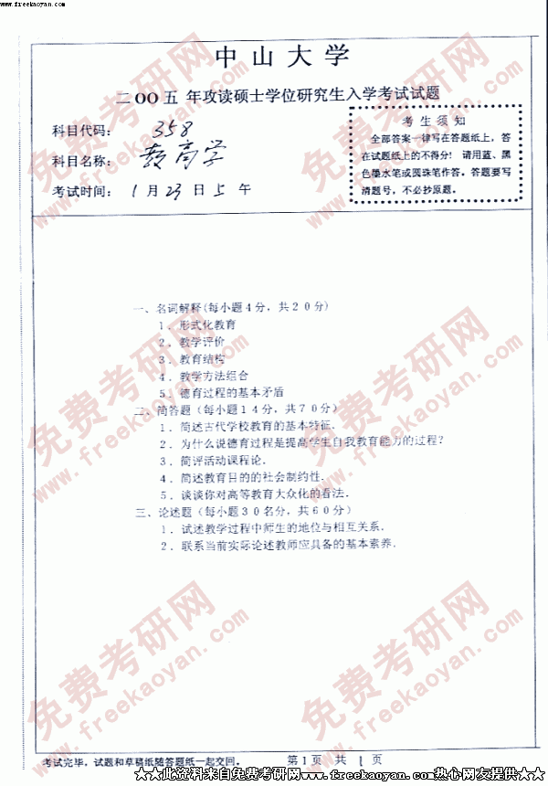 专业课考研经验 本站小编 FreeKaoyan 2018-01-22中山大学2005年考研真题-口腔综合