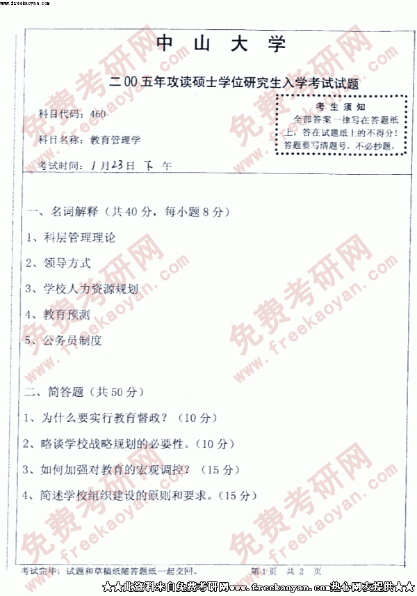 中山大学2005年考研真题-康德的道义论与密尔的功利论