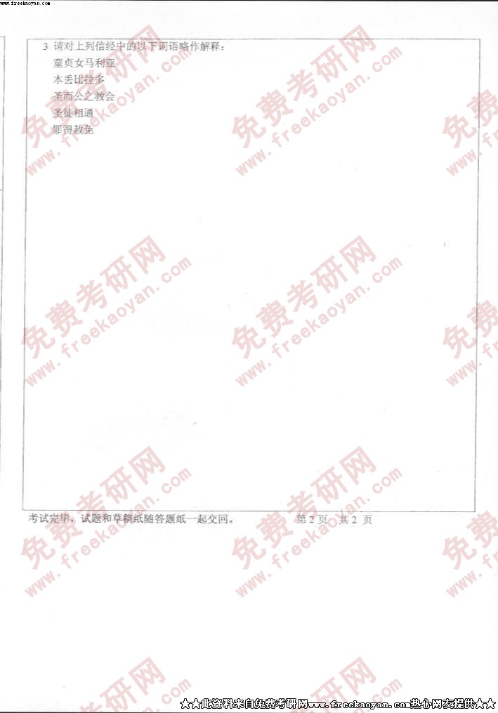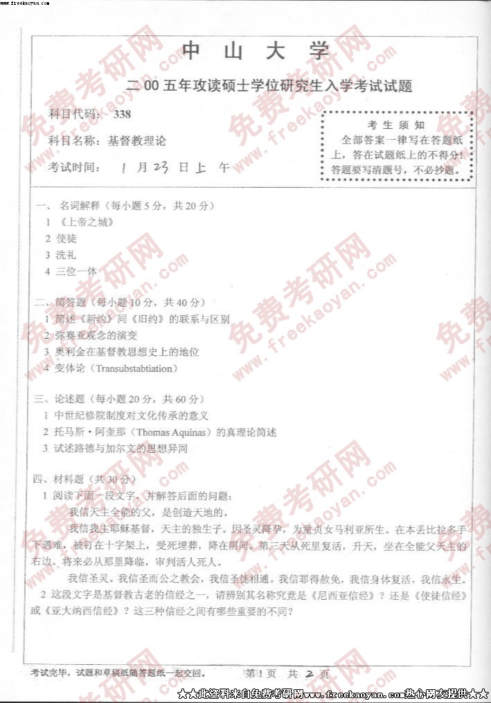 中山大学2005年考研真题-基督教理论