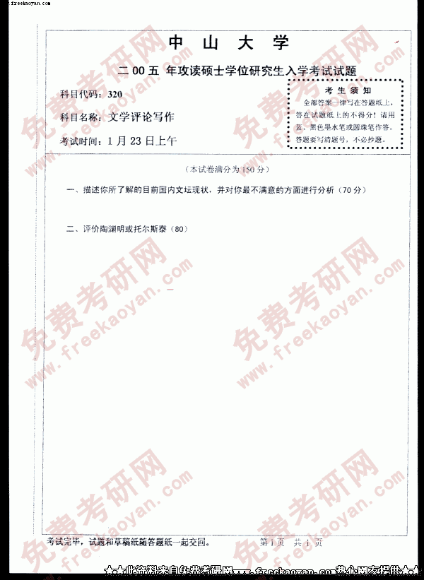 专业课考研经验 本站小编 FreeKaoyan 2018-01-22中山大学2005年考研真题-基础英语