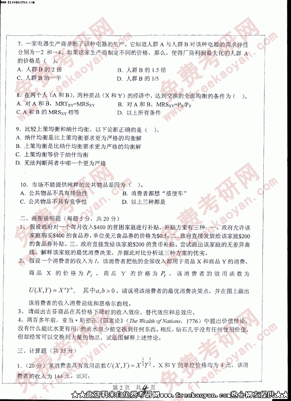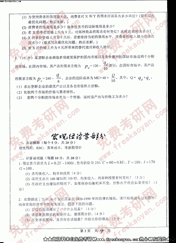 中山大学2005年考研真题-微观经济学与宏观经济学