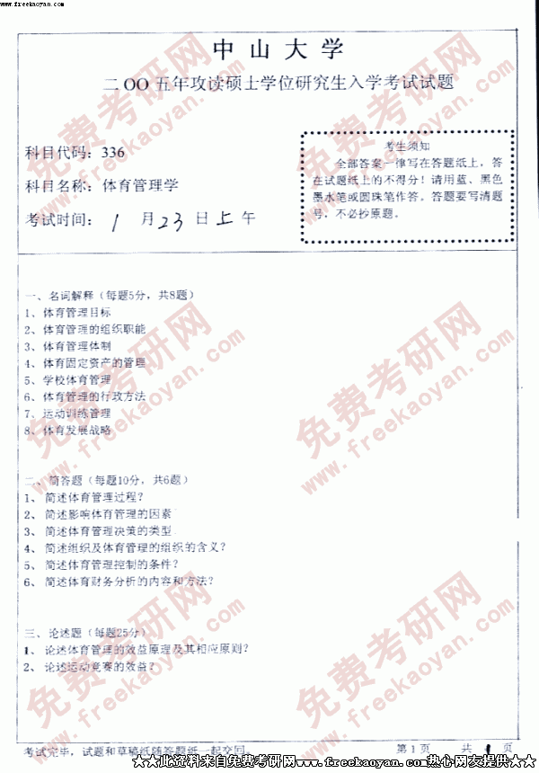 专业课考研经验 本站小编 FreeKaoyan 2018-01-22中山大学2005年考研真题-卫生综合