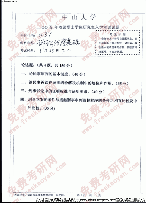 专业课考研经验 本站小编 FreeKaoyan 2018-01-22中山大学2005年考研真题-文学理论(含中西文论)