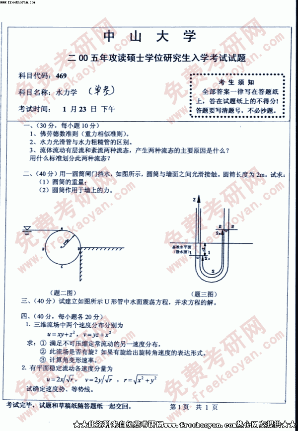 专业课考研经验 本站小编 FreeKaoyan 2018-01-22中山大学2005年考研真题-水利经济
