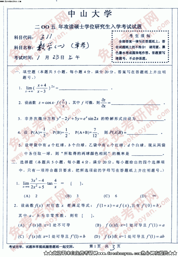 中山大学2005年考研真题-微观经济学与宏观经济学单考
