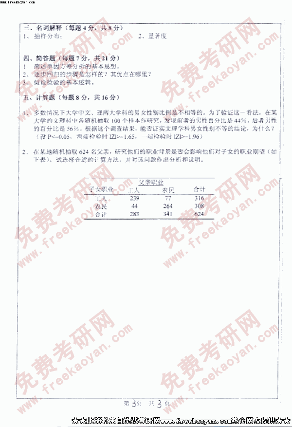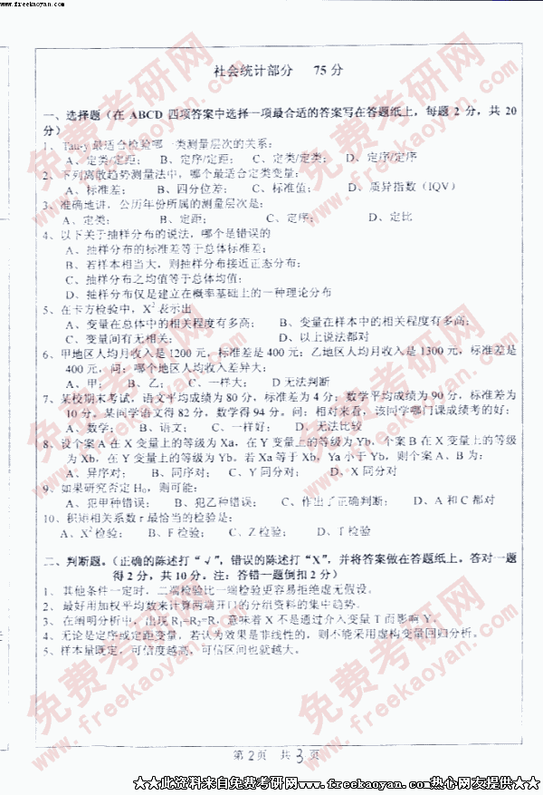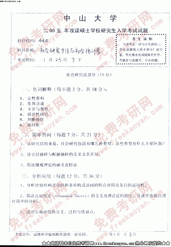 中山大学2005年考研真题-社会研究方法与社会统计学