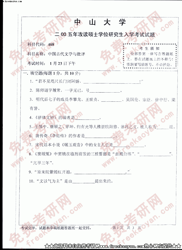 中山大学2005年考研真题-社会研究方法与社会统计学