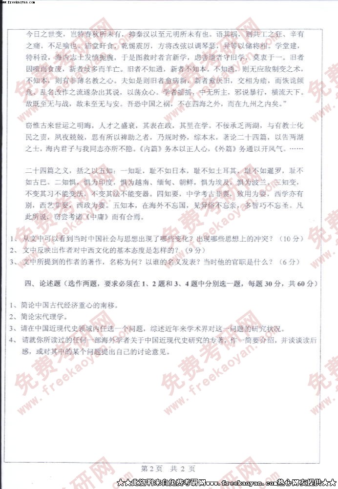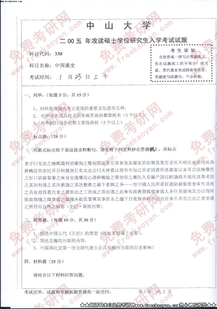 中山大学2005年考研真题-中国通史