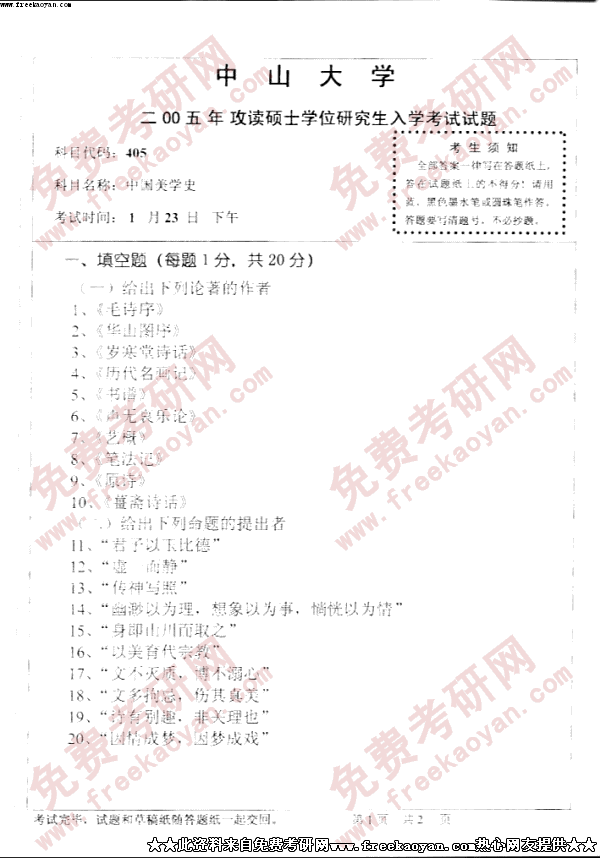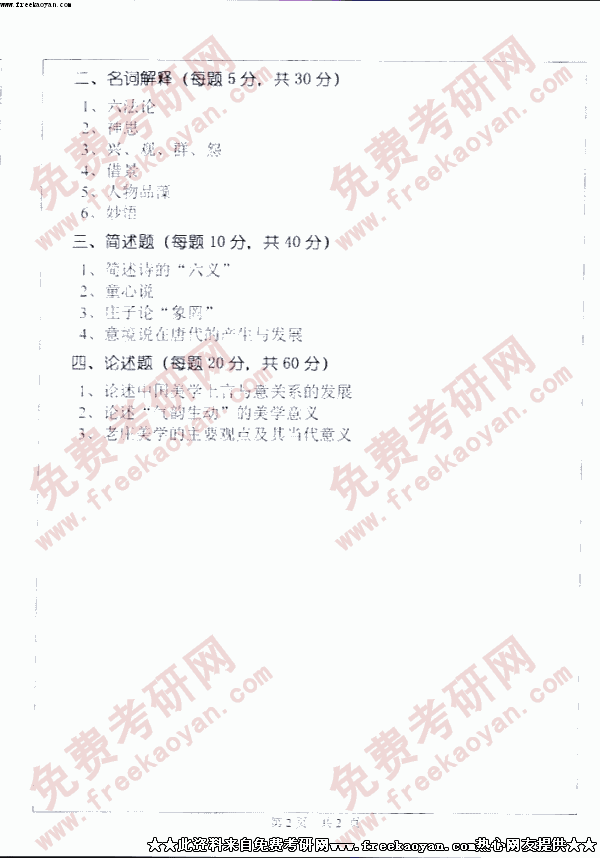 中山大学2005年考研真题-中国美学史
