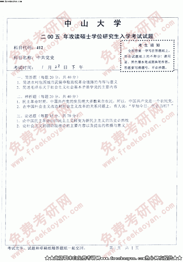 专业课考研经验 本站小编 FreeKaoyan 2018-01-22中山大学2005年考研真题-中国通史