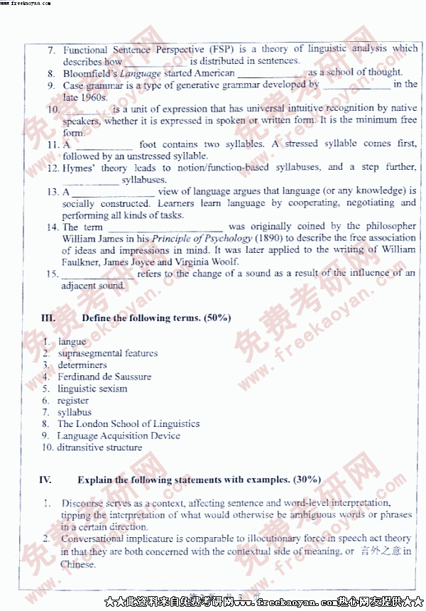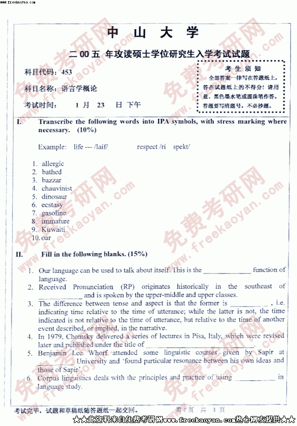 中山大学2005年考研真题-语言学概论二