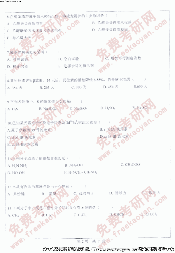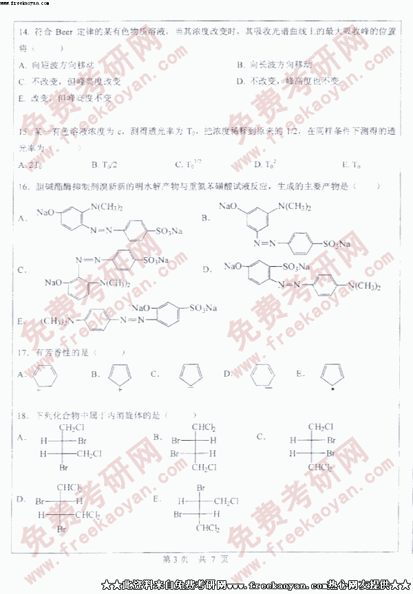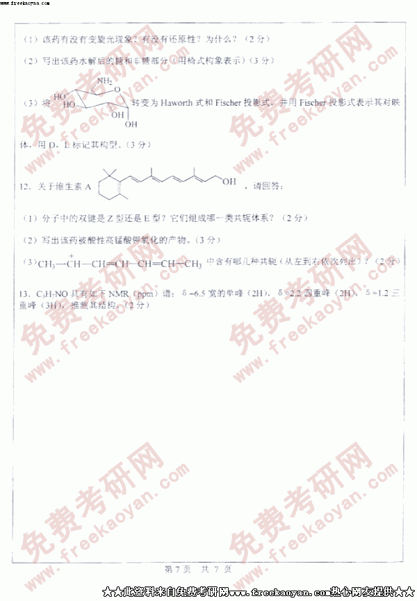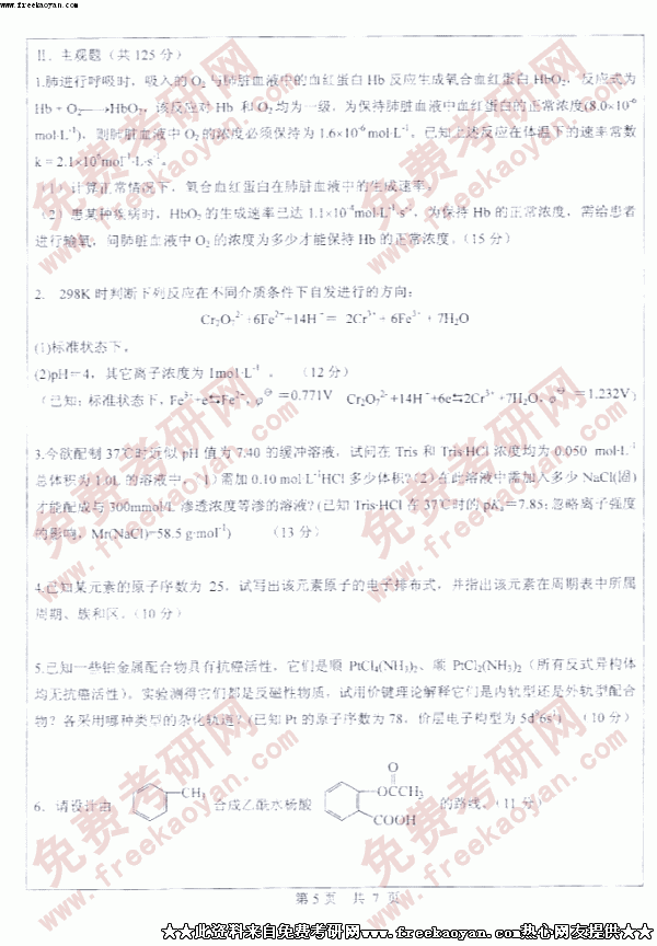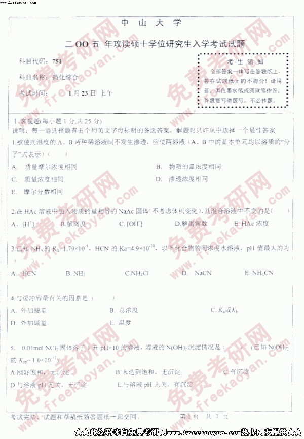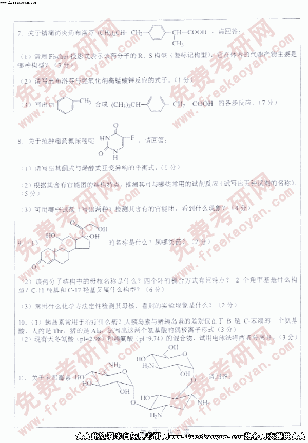 中山大学2005年考研真题-药化综合