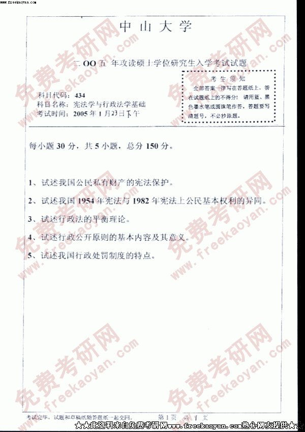 中山大学2005年考研真题-宪法学与行政法学基础