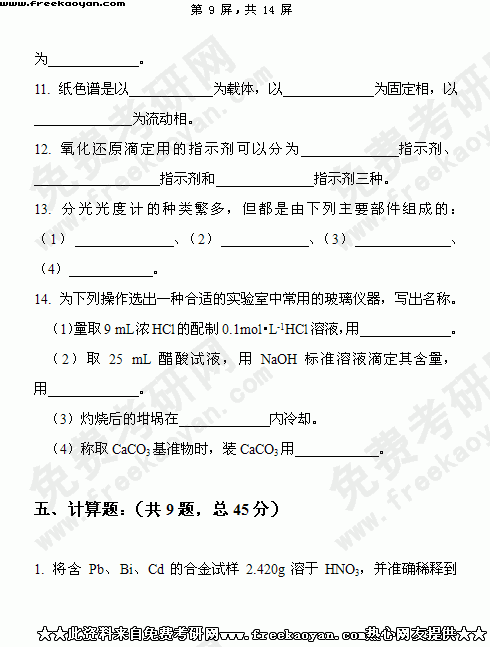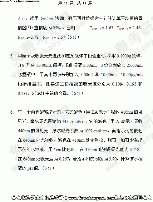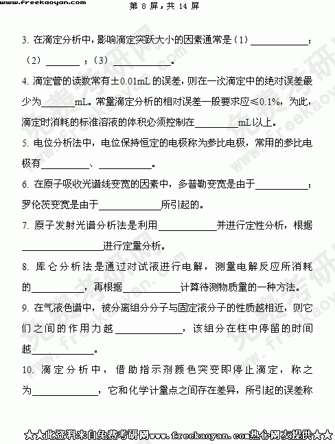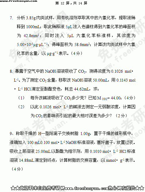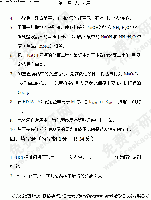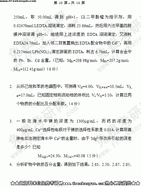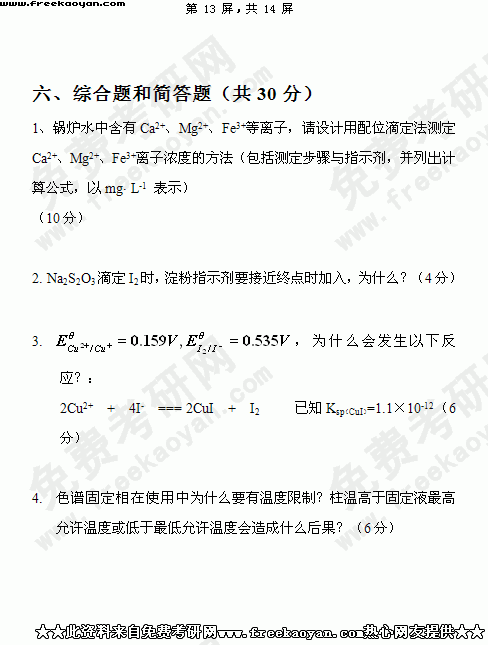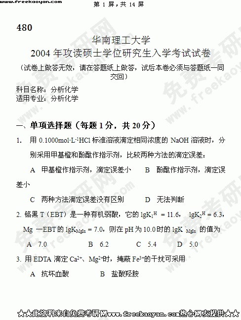 华南理工大学2004年考研真题-分析化学