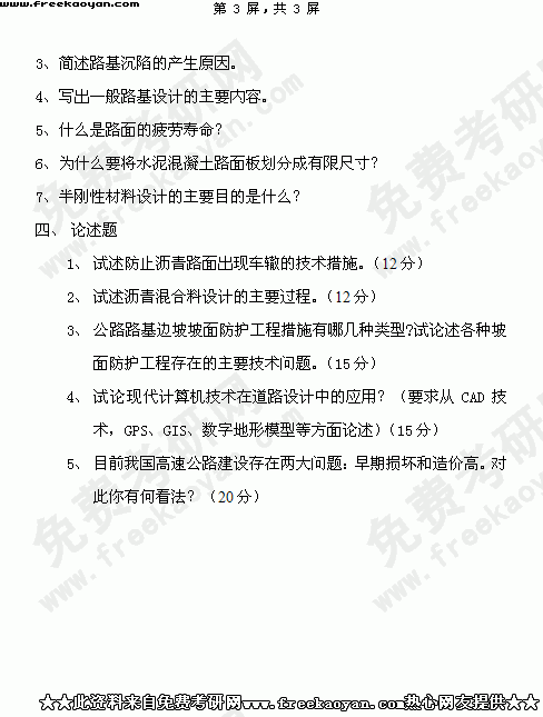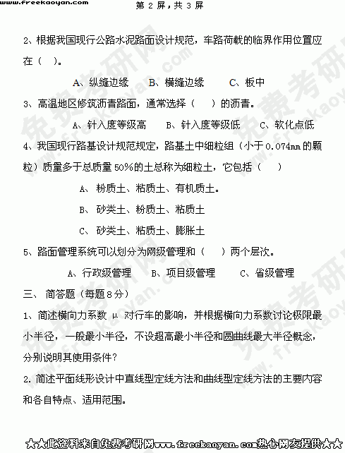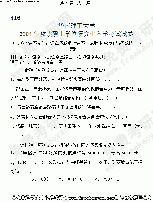 华南理工大学2004年考研真题-道路工程(含路基路面工程和道路勘测)