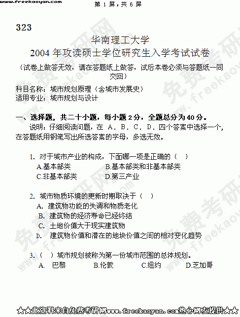 华南理工大学2004年考研真题-城市规划原理(含城市发展史)