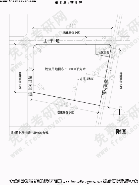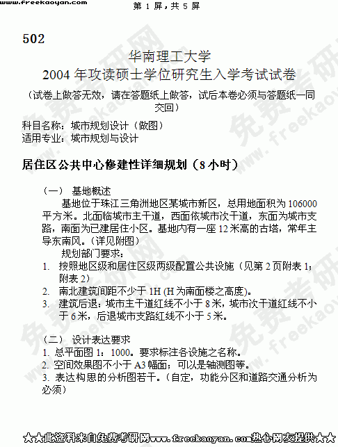 华南理工大学2004年考研真题-城市规划设计(做图)