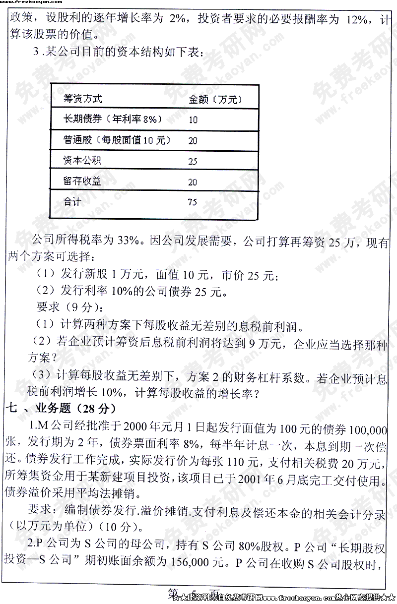 华南理工大学2004年考研真题-电子技术基础(含数字与模拟电路)