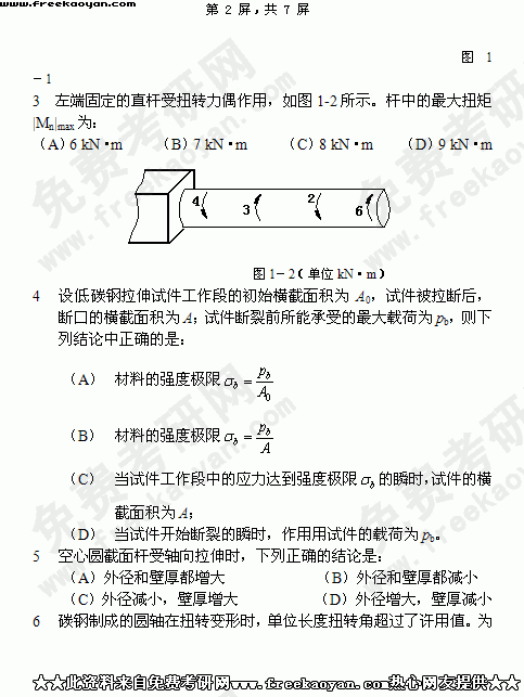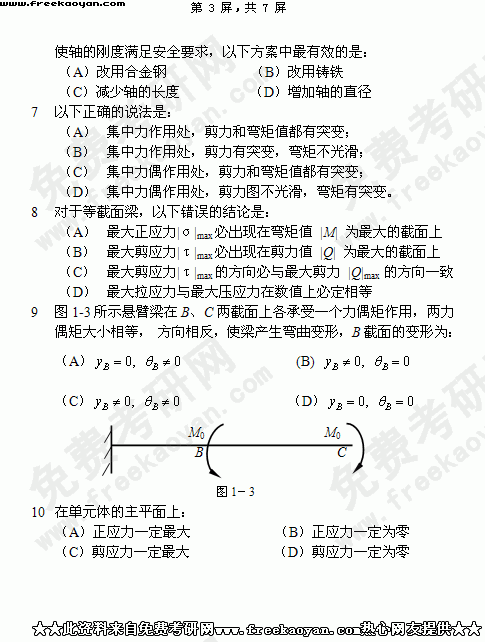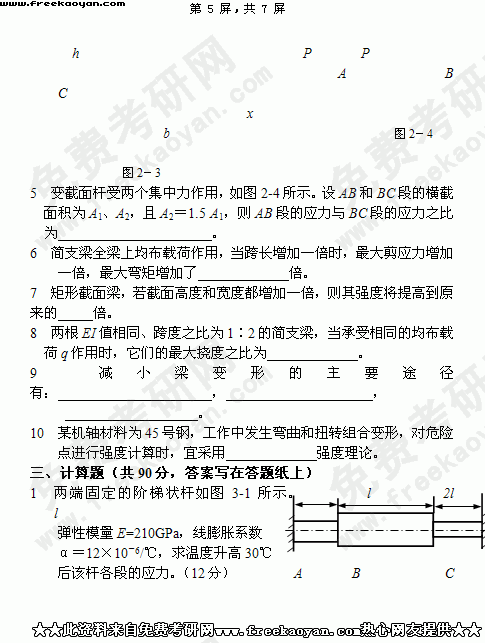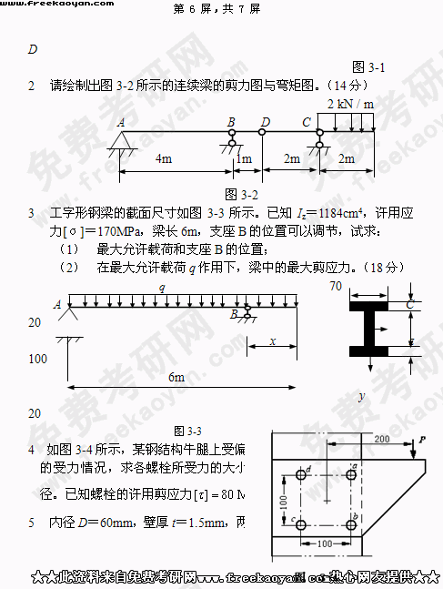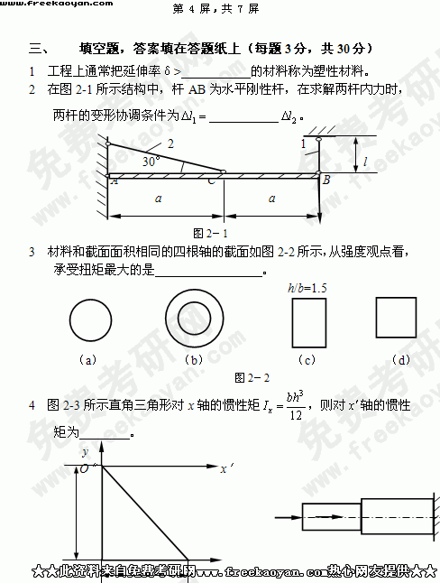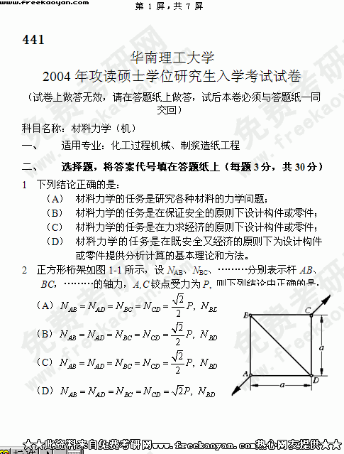 华南理工大学2004年考研真题-船舶静力学(含材料力学)