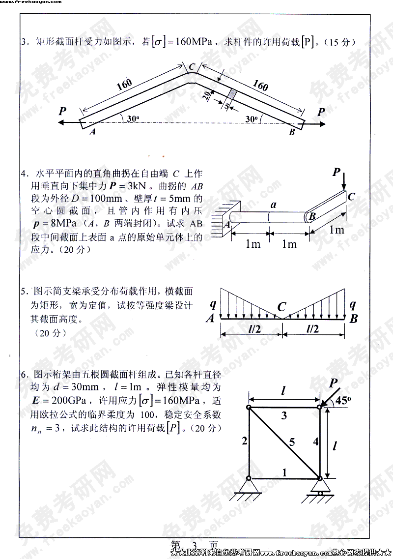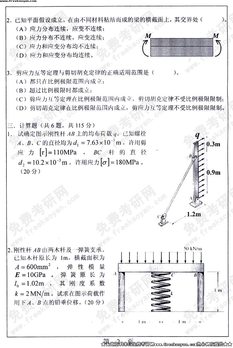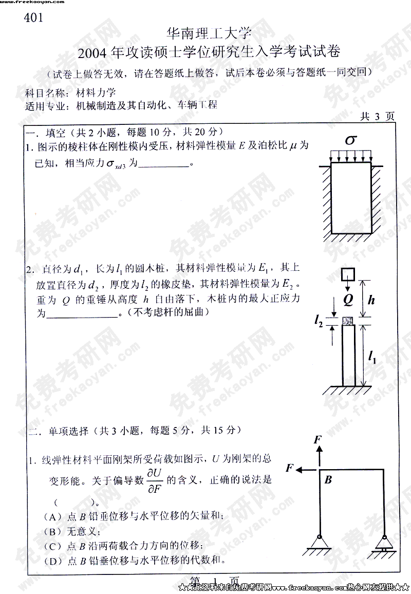 华南理工大学2004年考研真题-船舶静力学(含材料力学)