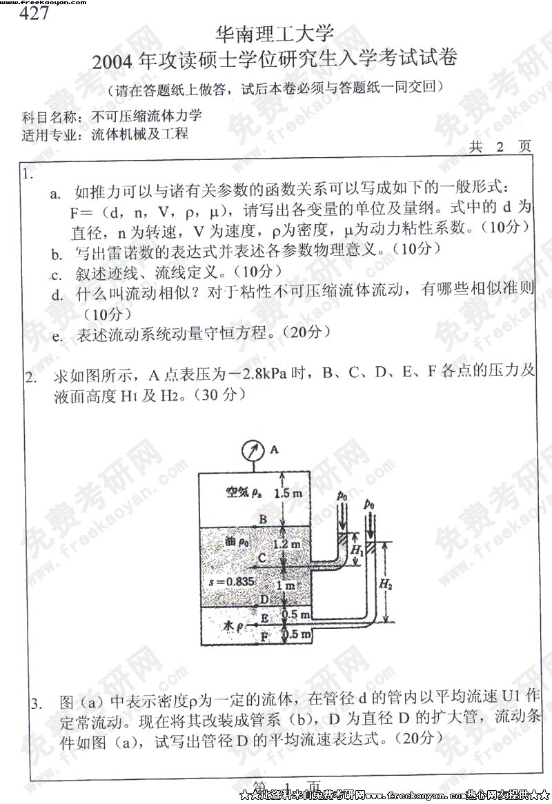 华南理工大学2004年考研真题-船舶静力学(含材料力学)