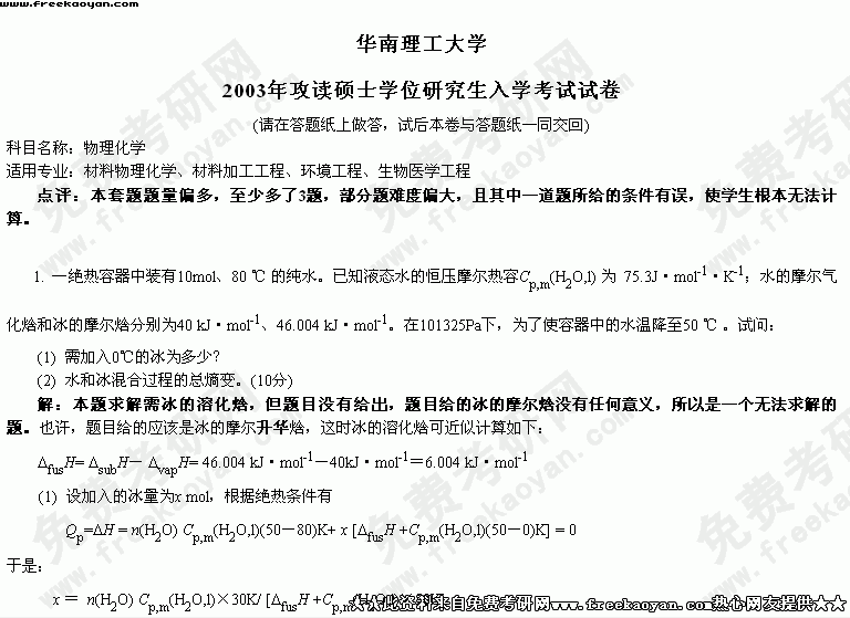 华南理工大学2004年考研真题-船舶静力学(含材料力学)