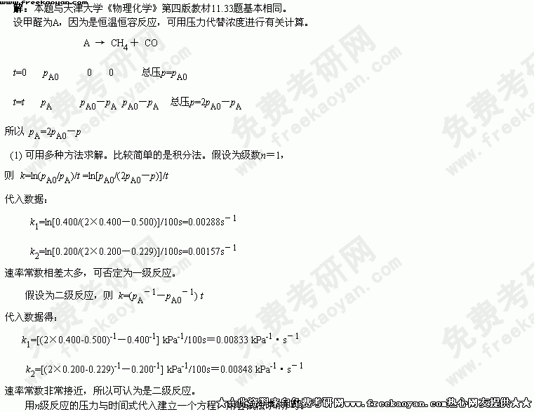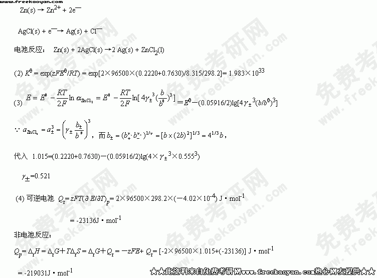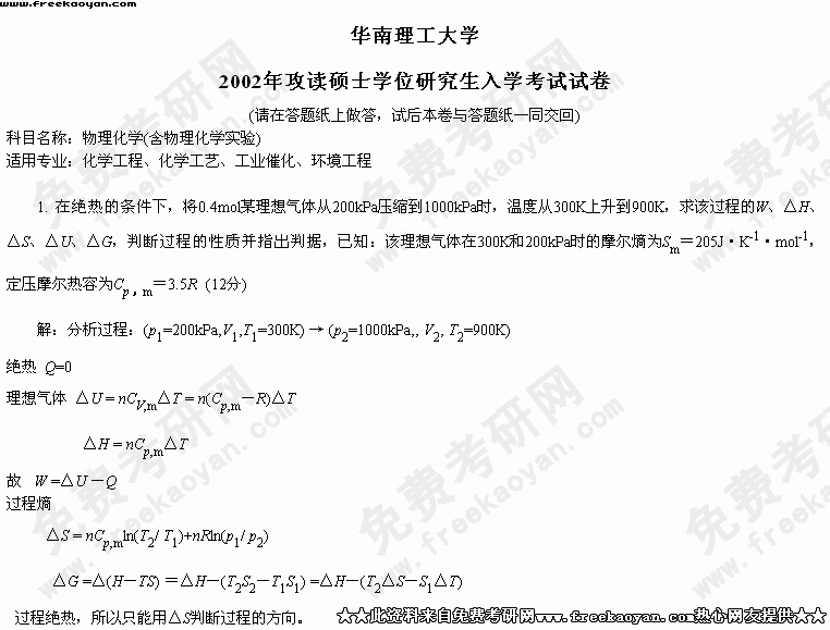 华南理工大学2002年考研真题-物理化学(含物理化学实验)有答案