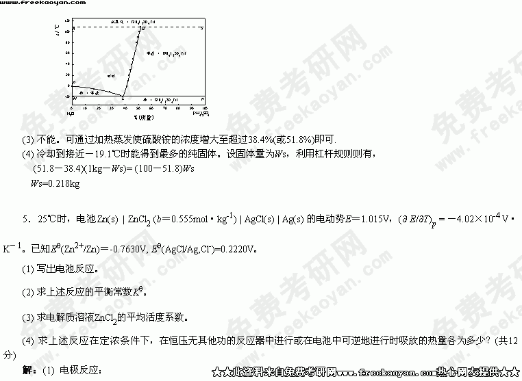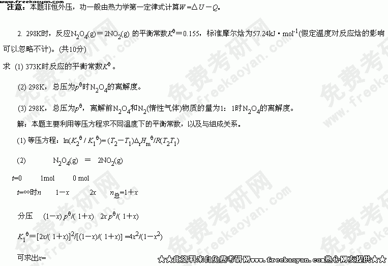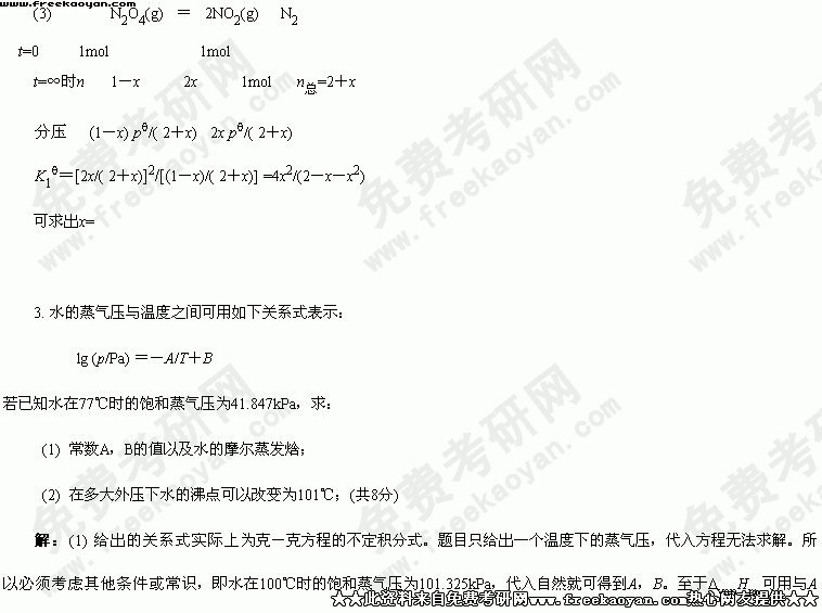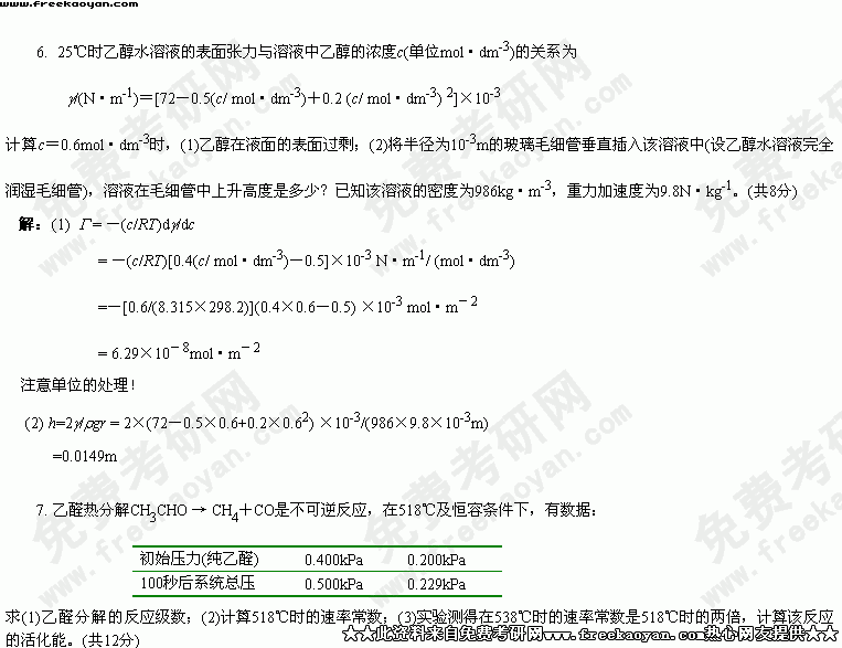 华南理工大学2003年考研真题-物理化学试卷(合化工原理一部分内容)有答案